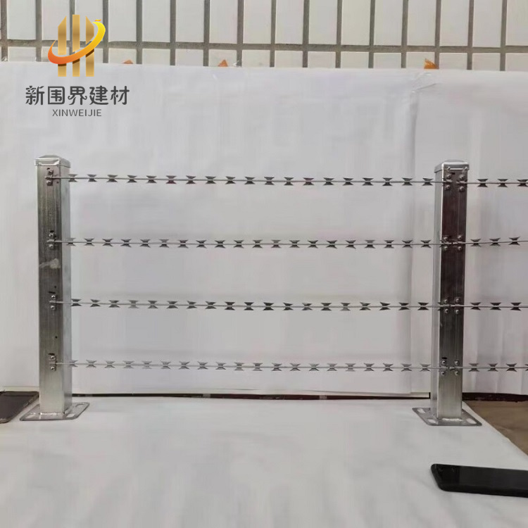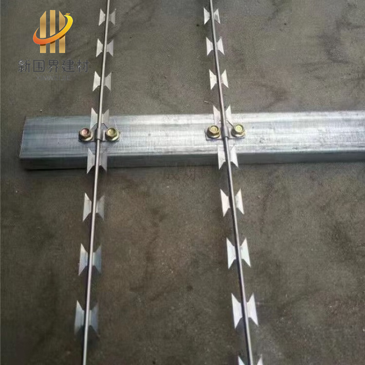 直条刀片刺绳(又称直线型刀片刺绳)是一种常见的安防设施,其优点主要是高效防护与威慑作用:刀片部分锋利且呈刀片状,配合直刺绳的结构,能有效阻止攀爬和翻越,形成物理屏障,对潜在入侵者起到显著的威慑效果。安装简便快捷:直线型设计通常可直接安装在围墙、立柱上,无需复杂调整,施工速度快,能快速实现防护成效,同时便于定制长度以适应不同场景。耐用防腐蚀:基材常采用镀锌钢丝或不锈钢,表面经过防腐处理(如热镀锌或涂塑),具有防水、耐锈蚀特性,能在户外恶劣环境中长期使用。
